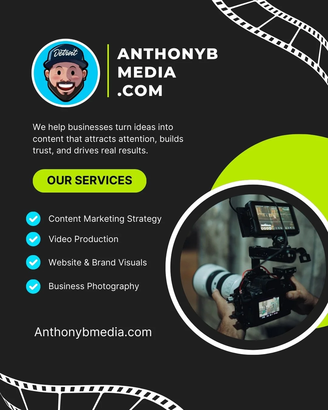Anthony B Media works with both businesses and individuals to create professional, meaningful visuals that build trust, preserve memories, and help your message come through clearly.